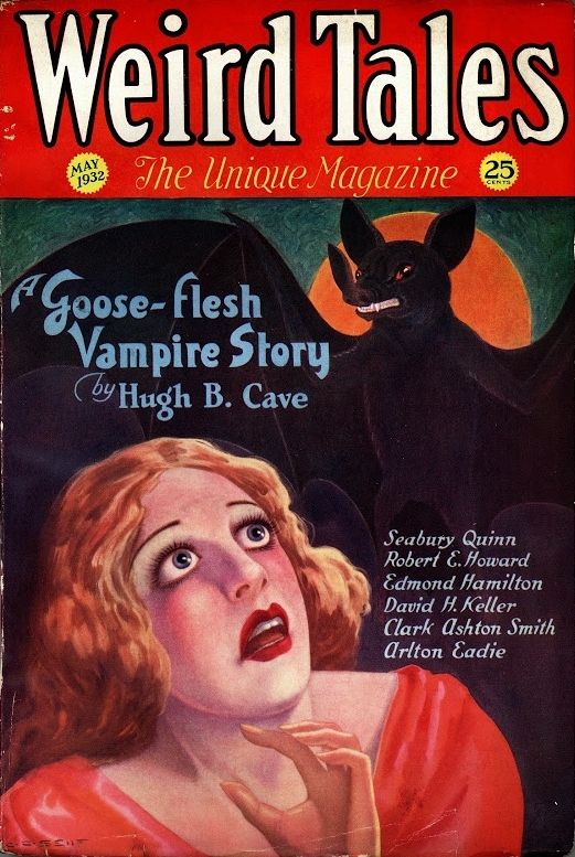 The May 1932 issue of Weird Tales featured stories like Robert E. Howard’s “The Horror from the Mound,” Clark Ashton Smith’s “The Vaults of Yoh-Vombis,” and Hugh B. Cave’s “The Brotherhood of Blood“. The issue, edited by Farnsworth Wright, also included works by Edmond Hamilton, David H. Keller, and Seabury Quinn, among others.